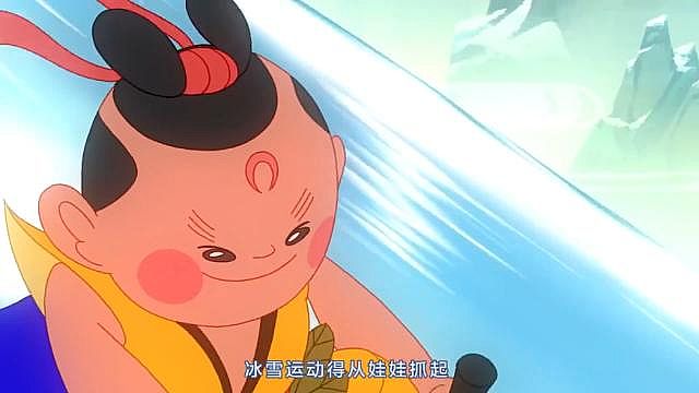接著小蛋生登場,這個角色出自1983年動畫長片《天書奇譚》,小蛋生是由天鵝蛋化為人形,進修法術后與袁公一起消滅狐妖。而大圣的旁白說道:“冰雪動作要從娃娃抓起”,確實寓情于景。