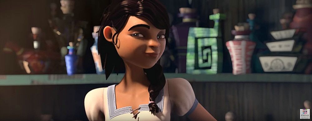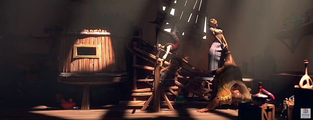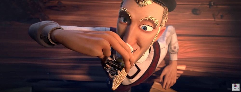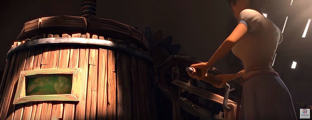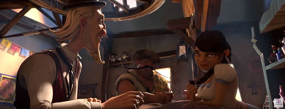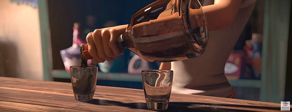 這部三維動畫短片,前面倆逗逼牛仔爭風吃醋老半天,美女老板娘就那么邪魅的看著他們一直倒酒的時候,就感覺不太對頭。 果然后面倆人一喝蒙蔽,直接被拖走丟進釀酒機了。。這墨西哥孫二娘還真挺牛逼… 所以說,有美女莫名給你獻殷勤時候得小心,十有八九得是個陷阱,另外,倆人花里胡哨又是扎手又是玩牌的秀技術,妄圖討的姑娘歡心,實在是太弱雞了,整袋的金幣不能嘩嘩亮出來,還泡什么妞啊,自己啥屌絲樣心里沒點數么?